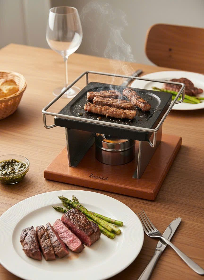 * Tên hàng: Bộ đá nướng đế gỗ dùng cồn